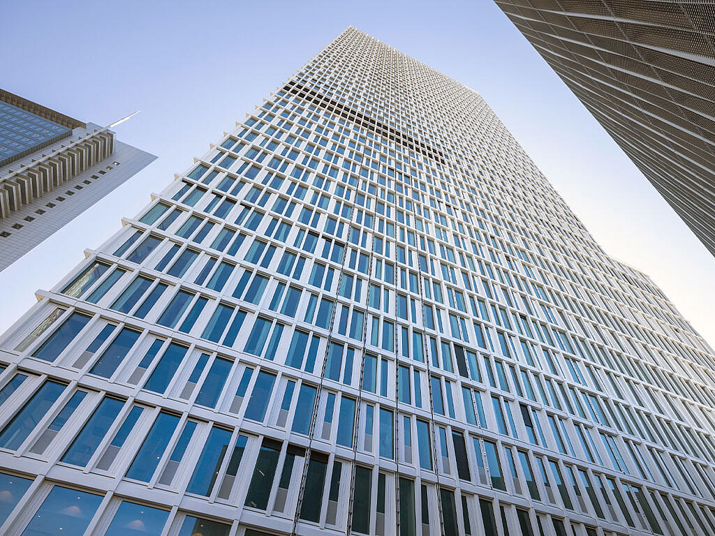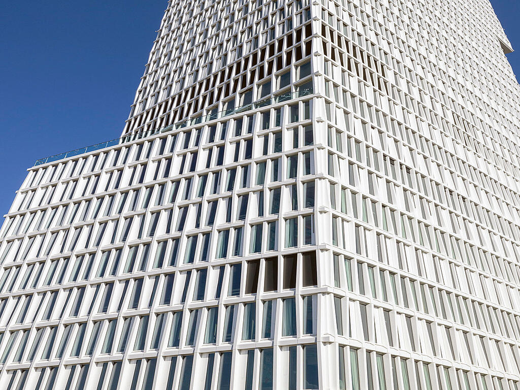 Leistungsspektrum 34.000m² Elementfassade mit vorgelagerten Lisenenkonstruktion, 1.100m² Stahl-Pfosten-Riegel-Fassade, 100m² Glaslamellenfenster, 50m² Lochfenster und Drehtüren, 500m² Sonder-Raffstoren, 4.600m² Bekleidung mit LM-Streckmetallblechen / Attika / LM-Sockelbleche, Abhangdecken mit Alu-Blechen